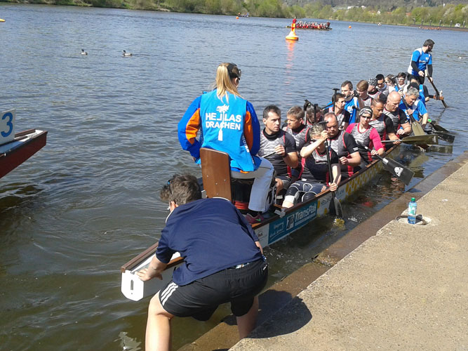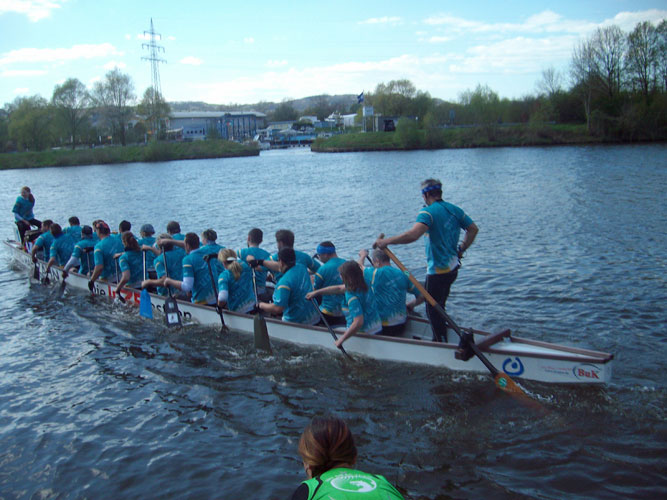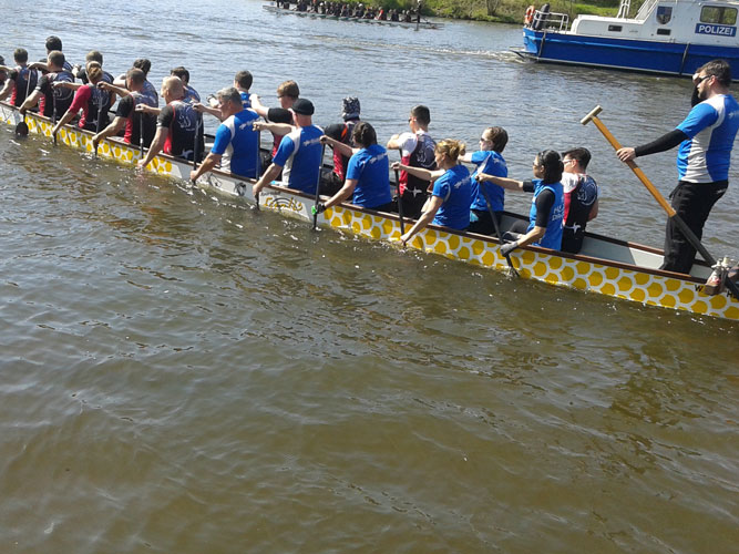 Die Gießener Mannschaft musste sich nur den dominierenden Neckar-Drachen (46:26 min.), dem Team D+S+x (47:10 min.) und dem KWS Drag Team geschlagen geben. Letztere hatten mit einer Endzeit von 49:36 Minuten nur acht Sekunden Vorsprung auf das Boot aus Gießen – da geht noch was!