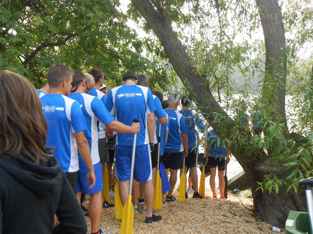Die erste Herausforderung am Sonntag war das Zeitrennen. Anhand der Zeiten wurden die 27 Teams nach Sport- (Plätze 1-12) und Fun-Cup (Plätze 13 bis 27) eingeteilt. Die Hellas Drachen qualifizierten sich mit der Tagesbestzeit (49,78 Sekunden) für den Sport-Cup. Im Vorlauf des Sport-Cups siegte das Team auf vor den Mainsprinter Offenbach und qualifizierte sich damit direkt für das Finale.
