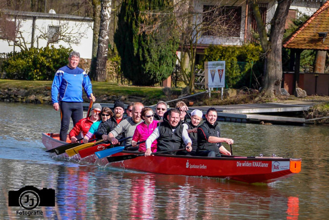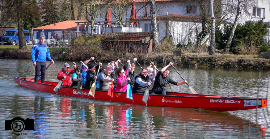 Diesen Winter haben alle Gießener Paddelbegeisterte regelmäßig zusammen auf der Lahn trainiert. Auch wenn der ein oder andere sich morgens bei kaltem Wetter aus dem Bett kämpfen musste, gelohnt hat es sich jedenfalls immer: Von 10 bis 12 Uhr am Sonntagmorgen konnte man dann in den letzten vier Monaten – egal bei welchem Wetter – ein oder zwei 20er Drachenboote beim Training auf der Lahn beobachten. Der Fokus lag dabei auf Technik und Ausdauer. Unter anderem wurden Überholmanöver und Wenden geprobt, sowie das Gefühl für Bewegungsabläufe und Takt verbessert. Ergänzend zum Training auf dem Wasser wurden einmal pro Woche der Kraftraum genutzt und das Angebot des Hallentrainings wahrgenommen.
